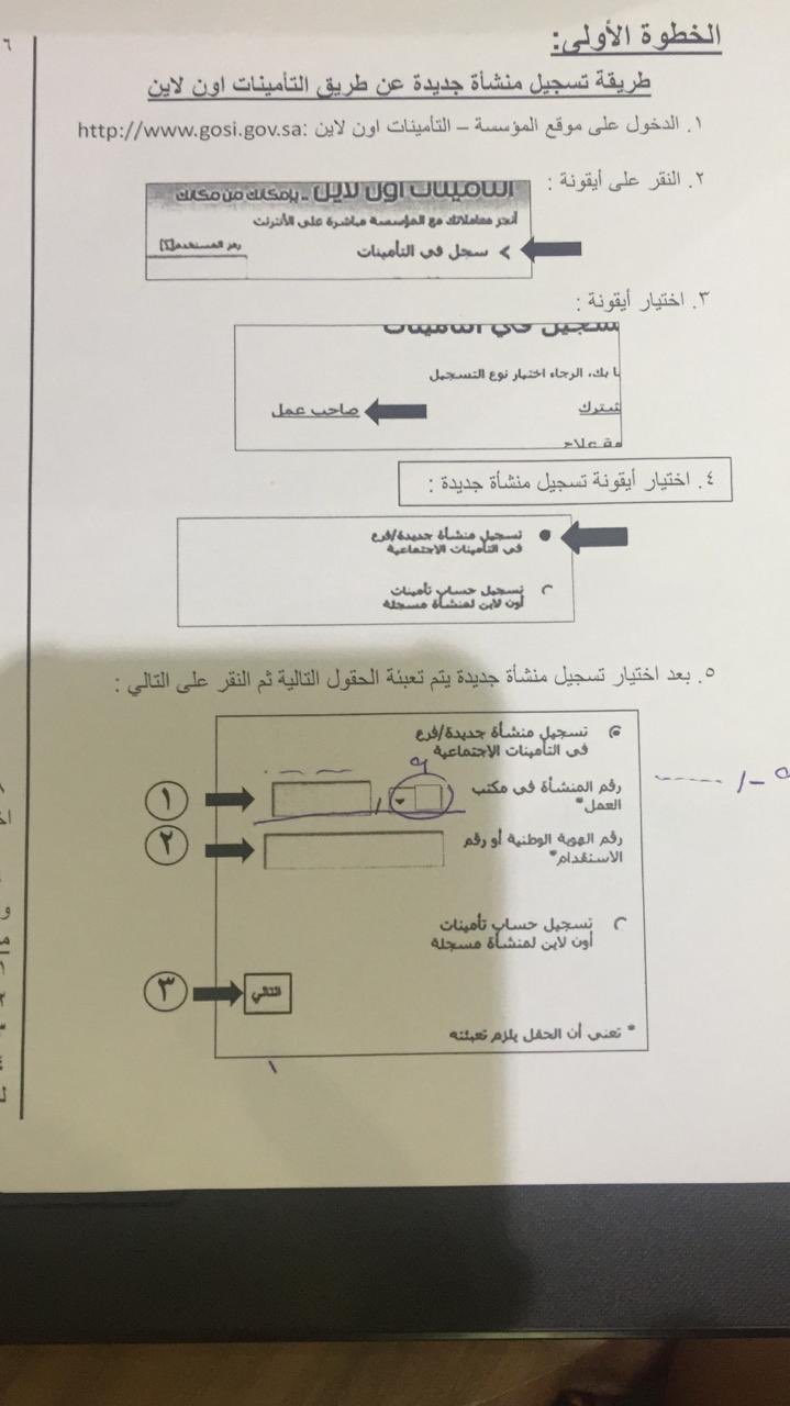خدمة إلكترونية تقدمها المؤسسة العامة للتأمينات الاجتماعية تمكن المستفيد من معرفة ما إذا كان مشتركا في نظام التأمينات الاجتماعية. 4 في الصفحة التالية يعطيك بعض المعلومات ثم خيارين تسجيل منشأة جديدة فرع في التأمينات الإجتماعية او تسجيل حساب تأمينات أون لاين لمنشأة مسجلة اختر احدهما ثم ادخل البيانات المطلوبة. كيف اعرف رقم المنشأة الخاصة بي لكى تعرف رقم المنشاة الخاص بك يجب عليك التواصل مع خدمة العملاء فى التامينات الاجتماعية من خلال الرقم التالى. 4 أختر تسجيل منشأة جديدة فرع في التأمينات الإجتماعية كما هو موضح بالصورة 5 أختر رقم المكتب في وزارة العمل ثم أدخل رقم المنشأة في وزارة العمل وأتبع بإدخال.