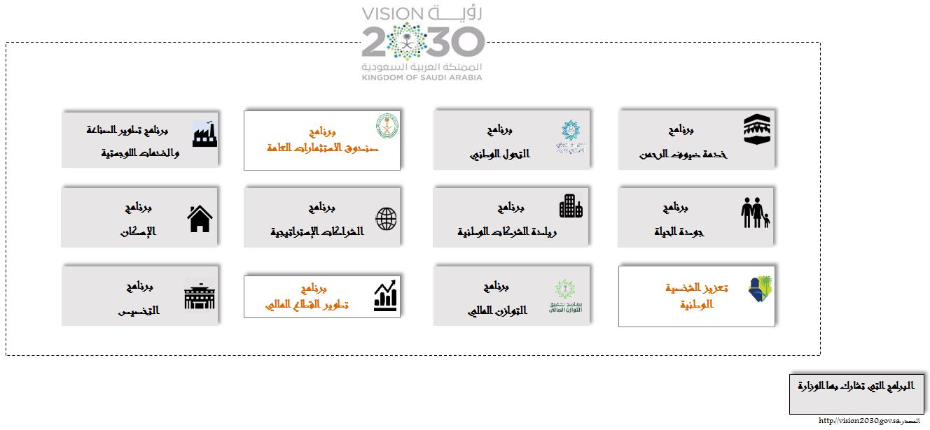 المله م الممك ن لشركائه من تحقيق الأهداف الاستراتيجية لمنظومة وزارة المالية. وحدة إدارية تتبع معالي الوزير مباشرة تهدف إلى قيادة وتمكين ودعم تنفيذ برنامج التحول الوطني في وزارة العدل والمساهمة بتحقيق أوجه التكامل بين الوزارة والجهات الداعمة لتحقيق الرؤية في سبيل تحقيق. مكاتب تحقيق الرؤية هي مكاتب مهيأة لإدارة التحول في الوزارات والمؤسسات المعنية بتنفيذ رؤية السعودية 2030 ومتابعة سير أعمال برنامج التحول الوطني 2020 وضمان حوكمة رؤية المملكة 2030. الرؤية والرسالة والأهداف محدد حاليا مبادرات مكتب تحقيق الرؤية.